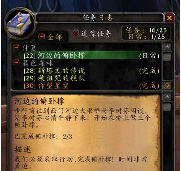 由于“俯臥撐”忽然躥紅,網(wǎng)游“魔獸世界”里也隨即出現(xiàn)了一個(gè)名叫“河邊的俯臥撐”的任務(wù)日志。(來源:新快報(bào) 記者 喬麥)