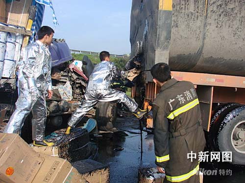 中新網(wǎng)韶關(guān)7月3日電(馮昶 李凌 鄭忠輝 鄭澤煌) 7月2日,京珠高速公路廣東韶關(guān)曲江服務(wù)區(qū)內(nèi)發(fā)生一起交通意外,導(dǎo)致裝有瀝青的槽罐車發(fā)生泄漏。當(dāng)?shù)叵、交警、安監(jiān)、環(huán)保、醫(yī)護(hù)等部門接報后迅速趕到現(xiàn)場處置。
