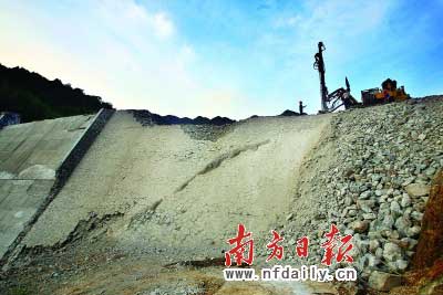 到昨天傍晚發(fā)稿時(shí)止,廣州市防總已按省防總要求,組織爆破公司14名工人,1臺(tái)大型鉆機(jī)、4臺(tái)小型鉆機(jī)已到達(dá)現(xiàn)場(見上圖,王亮攝)。目前施工通道已經(jīng)修復(fù),正在做好爆破前的準(zhǔn)備工作。目前,廣東省防總以及市現(xiàn)場督導(dǎo)組等有關(guān)專家,已經(jīng)進(jìn)入現(xiàn)場與爆破公司研究分析具體爆破方案,督導(dǎo)爆破方案實(shí)施。