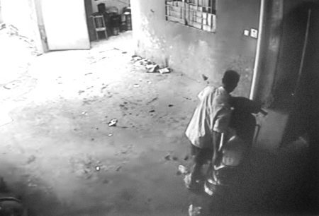 “這個(gè)人很了解這里的情況,”鄭先生說,他知道鐵門自動(dòng)關(guān)閉的響聲會(huì)驚動(dòng)樓上的人,所以用鐵門下面的磚頭頂住鐵門。