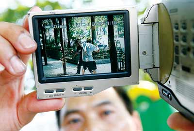 高新區(qū)科園三路某超市一名員工,發(fā)現(xiàn)一小偷偷走兩瓶洗發(fā)液后,追出500米左右并與之在街頭搏斗起來(lái)。恰在此時(shí),一位市民用DV在旁邊拍下了兩人搏斗的全過(guò)程,現(xiàn)場(chǎng)40余名圍觀者還以為他們?cè)谂膽虿⒐恼聘吆簟凹佑汀。昨天,石橋鋪派出所?duì)提供錄像幫他們破案的這名DV男子大加贊賞,并開(kāi)始對(duì)此案著手調(diào)查。