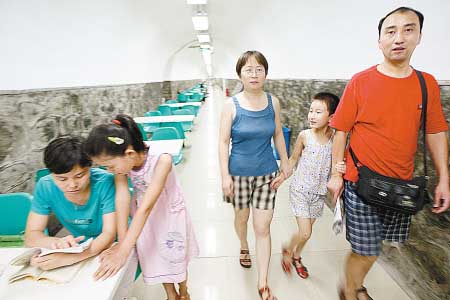在防空洞里,記者遇到了專程從北郊文景路趕來體驗新鮮的陳瑞蓮、張清湖老兩口。66歲的陳大媽告訴記者,她和老伴昨日在報紙上看到消息后,專門乘公交車來防空洞避暑。走了一圈,看了防空洞內(nèi)齊整、實用的設施后,陳大媽滿意地說:“我開始還擔心沒座椅呢,來這兒一看真好,比我想象得還要好!”張大爺也樂呵呵地說,平時嫌外面熱,一般只能和老伴在家待著,現(xiàn)在有防空洞這么好的避暑地方,雖然離家遠點兒,但他們還是會經(jīng)常來,“和同齡朋友聊聊天,比在家里有意思多了!