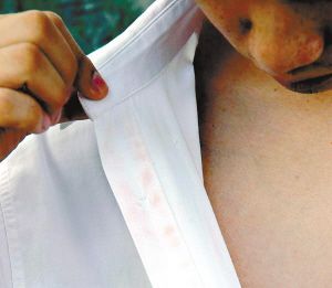 記者留意到,小黃襯衫上的紅色汗?jié)n,雖然看上去十分明顯,卻并不是深紅的鮮血顏色,而是淡淡的粉紅色。小黃告訴記者,他曾經(jīng)到醫(yī)院就診,但也沒有查出原因。雖然“汗血”已經(jīng)有三年時(shí)間,自己身體還是比較健康。