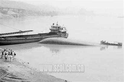 當(dāng)日上午,屏山縣一艘貨船駛往普安鄉(xiāng)漁翁廟碼頭作業(yè)。9時10分許,該船在完成作業(yè)離開碼頭時,船體突然進水。由于正在漲水的金沙江水流湍急,很快就將進水的該船沖翻后船底朝天,船上8名船員全部落水。此后,船底朝天、重達100多噸的巨大鋼鐵漂浮物失去控制,像一枚漂流在江中的“水雷”,時沉?xí)r浮沖向下游,險情突發(fā)。