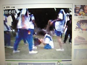 7月11日,酷6網(wǎng)上出現(xiàn)了一個肇慶某中學的女學生被打的過程視頻,視頻長達4分49秒,重復兩次播放。