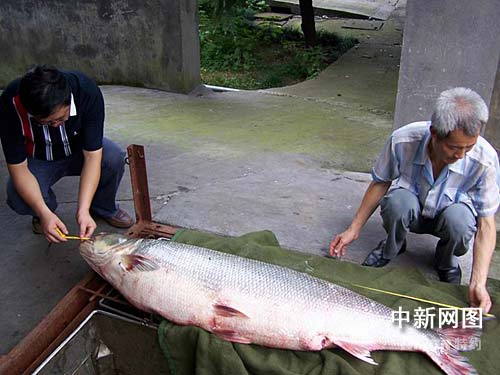 中新網(wǎng)杭州7月20日電(記者龔讀法 通訊員龔一磊) 日前,浙江省杭州千島湖發(fā)展有限公司捕撈隊(duì)在千島湖宅上攔網(wǎng)上捕獲特大鱤鰍魚一條.該魚長165cm,胸圍91cm,重54公斤,是近年來捕獲的最大鱤鰍魚,同時(shí)也是今年以來千島湖內(nèi)捕獲的第三條超百斤的大魚。目前,該鱤鰍魚已送上海水產(chǎn)大學(xué)制作標(biāo)本。