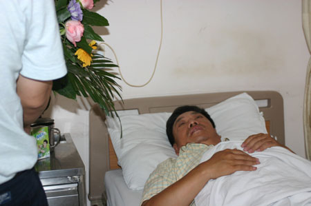 “當日晚上8時我在大河網(wǎng)上知道了這個消息后禁不住就流下了眼淚。一是我們自己能為有這樣的交警感到自豪,二是為打人者的野蠻行徑表示憤慨”!上周六、周日的兩天里,躺在黃河中心醫(yī)院病床上的交警賈世良迎來了一撥又一撥前來探望他的市民。