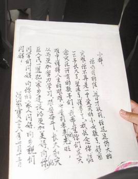 昨日,北川小姑娘劉小樺收到了一封彌足珍貴的來信———溫家寶總理在百忙之中抽空親筆給她用毛筆書寫的手寫體回信。小樺表示,要把溫爺爺的回信裱起來掛在家里的墻上。