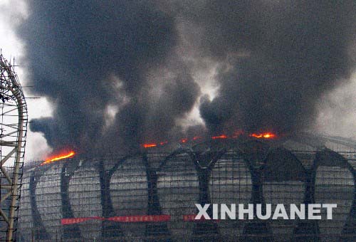 7月27日,濟南奧體中心在建體育館發(fā)生火災。這個體育館是為2009年在山東濟南舉行的十一屆全國運動會建設的。 新華社記者 朱崢 攝