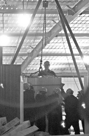 為了確保安全,有關部門請了兩個吊運公司來實施整個吊運方案。首先,用槽鋼將石底座以及舍利函全身包裹起來,這樣加固后鐵函和底座將牢牢結合在一起,吊運時也不易發(fā)生晃動等現(xiàn)象。之后通過“井口”的定滑輪把舍利函慢慢吊上來。