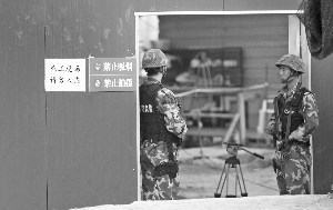武警戰(zhàn)士荷槍守衛(wèi) 快報記者 施向輝 攝