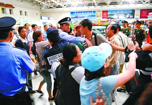 就乘客所言的“遭南航一工作人員辱罵”的情況,袁權(quán)說(shuō)“沒(méi)有這回事”。機(jī)場(chǎng)一警官稱,當(dāng)時(shí)并非警民沖突。經(jīng)調(diào)查,系南航工作人員說(shuō)了一些過(guò)激的言辭,導(dǎo)致乘客情緒失控,當(dāng)時(shí)有乘客做出了一些過(guò)激的行為,還有些人沖進(jìn)服務(wù)點(diǎn)推翻電腦,但電腦未損壞。