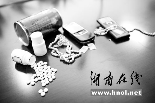 7月29日,長沙市公安局刑偵支隊(duì),民警展示繳獲的麻醉藥和“色誘”所得的財(cái)物記者武席同實(shí)習(xí)生王星文攝