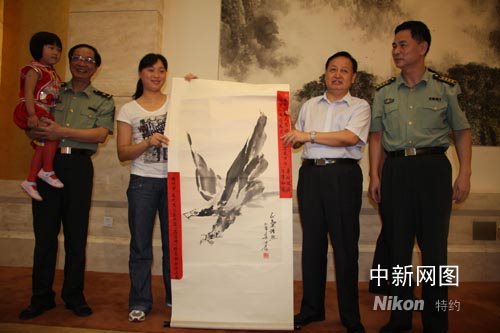 母拉詩(shī)易母女向湖北省委書記羅清泉贈(zèng)送書畫作品。 劉宇 攝