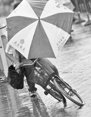 鳳凰撲來,狂風(fēng)大作,吹翻了行人的傘 快報記者 施向輝 顧煒