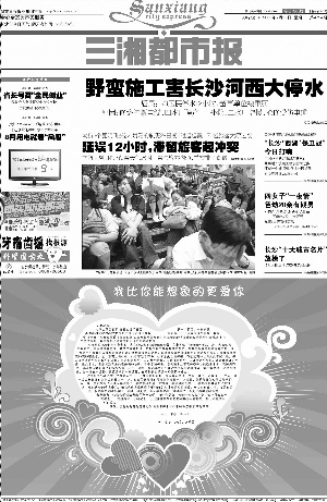 “哇,這可是封昂貴的情書! 平常很少看廣告的小余發(fā)現(xiàn),30日的《三湘都市報》有點不同,頭版用半個版的篇幅刊登了一封《我比你能想象的更愛你》,深情款款的文字配上溫馨淡雅的心形圖案,表達了男主角“帥”對女主角“盈”“處在崩潰的邊緣”的思念之情。