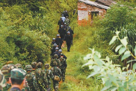 案發(fā)當(dāng)天晚上7時(shí),永豐縣委政法委就從各個(gè)鄉(xiāng)鎮(zhèn)抽點(diǎn)干部和民兵預(yù)備役人員配合警方圍捕嫌犯。于此同時(shí),吉安市公安局特警支隊(duì)、武警江西總隊(duì)吉安支隊(duì)也都派出大批警力連夜趕赴到永豐增援。特警支隊(duì)長(zhǎng)朱小明說(shuō),他們除了參與搜山外,還擔(dān)負(fù)堵截、埋伏和狙擊的任務(wù)。永豐縣委副書(shū)記、政法委書(shū)記劉曉聰說(shuō),圍捕工作分為四大塊,主要是偵查、堵卡、調(diào)查取證和搜山,參與圍捕的人數(shù)超過(guò)800人。