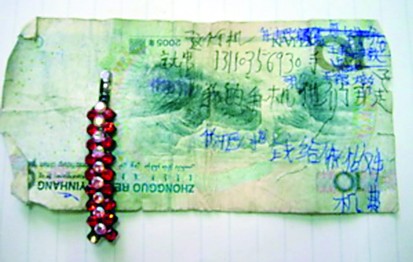 陜西省一女孩王某被“洗腦”后,以邀請母親來滕游玩為名,將母親賈某和9歲的弟弟騙至傳銷窩點。賈某急中生智,在拾元紙幣上寫下求救信息,拋至窗外,在好心人和民警的幫助下,母子三人才得以解救。