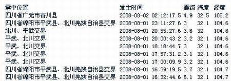 據(jù)地震臺網(wǎng)測定,北京時間8月2日02時12分,四川省廣元市青川縣(北緯32.5,東經(jīng)105.2) 發(fā)生4.9級余震。