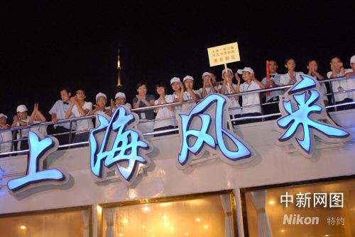 都江堰震區(qū)孩子在滬游覽浦江夜景。張亨偉 攝