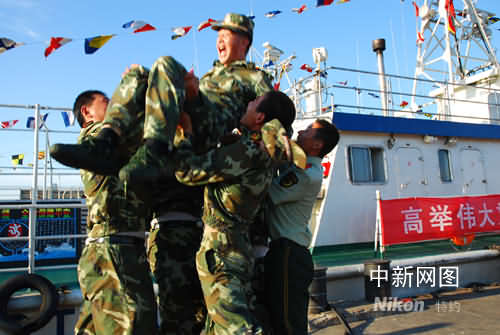 26日下午3時(shí)30分,三艘海警艦艇緩緩靠上碼頭,執(zhí)行安保任務(wù)的海警艇編隊(duì)總指揮、省公安邊防總隊(duì)副總隊(duì)長毛正洪等官兵走下艇,與闊別數(shù)月的戰(zhàn)友們握手、擁抱。10名戰(zhàn)友上前向執(zhí)行奧運(yùn)安保任務(wù)的海警代表敬獻(xiàn)了鮮花。