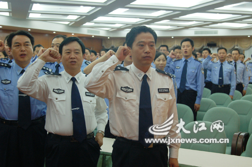 廬山公安局局長(zhǎng)涂林帶領(lǐng)廬山全體民警重溫入警宣誓儀式