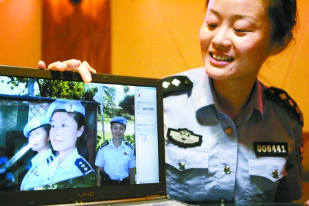 她叫董柯,是我國派到東帝汶的第11批中國維和警察,現(xiàn)在是鄭州市公安局出入境管理處民警。2007年3月28日,她經(jīng)過英語、駕駛技術(shù)、射擊等考核后,和國內(nèi)其他省份10名民警奔赴東帝汶。