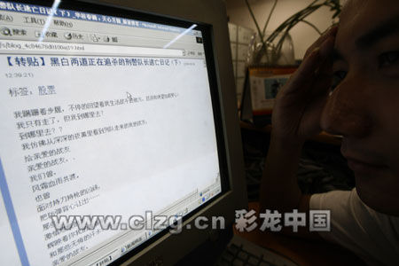 網(wǎng)友上網(wǎng)觀看關(guān)于“刑警隊(duì)長逃亡日記”的帖子。王磊 攝
