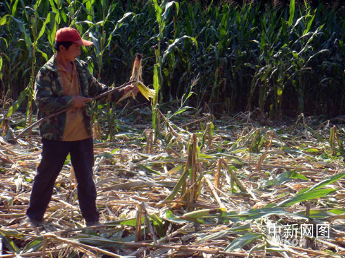 在吉林省樺甸市橫道河子鄉(xiāng)荒山村臥龍屯,野豬經(jīng)常會突然闖進農(nóng)民的玉米地,啃食玉米!把劭从衩壮墒炝,卻被野豬成片成片地毀壞!贝迕裱ν赫f,他家的玉米地就被野豬毀了,啃食的玉米棒散落一地。