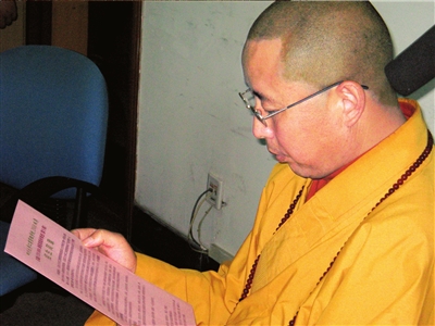 填寫好報名表,釋宏永的手機(jī)響起,僧袍里,他熟練地摸出一部智能手機(jī)——事實上,他還有聯(lián)想筆記本電腦、開著越野車、印有名片,這些都“很現(xiàn)代”。在他看來,寺廟不能脫離現(xiàn)代社會而存在。這次汶川大地震期間,釋宏永參加救援隊伍,帶路營救出45名群眾,并一直堅持在災(zāi)區(qū)一線抗震救災(zāi),個人化緣為回龍溝災(zāi)區(qū)買回1萬多斤大米賑災(zāi),在當(dāng)?shù)乇粋鳛榧言挕?