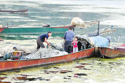 位于陽宗海邊的昆明市宜良縣湯池鎮(zhèn)施家嘴村,當(dāng)?shù)卮迕竦纳钆c陽宗海息息相關(guān)。記者看到,這里隨處可見的是昆明、玉溪兩市政府對陽宗海實施“三禁”的通告:禁止飲用陽宗海水;禁止在陽宗海游泳;禁止捕撈陽宗海的水生產(chǎn)品。通告的簽發(fā)日期是9月17日。