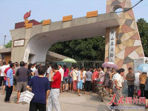 2008年9月19日上午七時(shí)許,湖南省衡陽(yáng)市衡山縣城南試驗(yàn)小學(xué)發(fā)生慘。4名小學(xué)生在教學(xué)樓走廊上玩耍時(shí)等待上課,被一名男青年從四樓扔到樓下,1女3男4名學(xué)生受傷,其中一名男生遇到樹(shù)枝阻攔,緩沖后落地僅受輕傷。