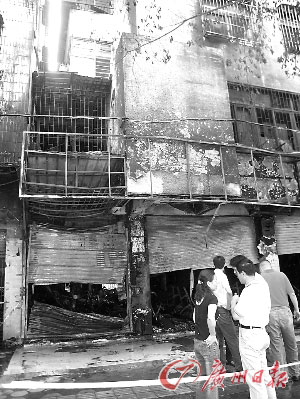 一目擊者稱,他早上上班經(jīng)過(guò)時(shí),大火將鐵門都燒穿孔了,可以聽(tīng)到里面?zhèn)鱽?lái)“啪啪”的聲響,火苗躥上二樓陽(yáng)臺(tái)。