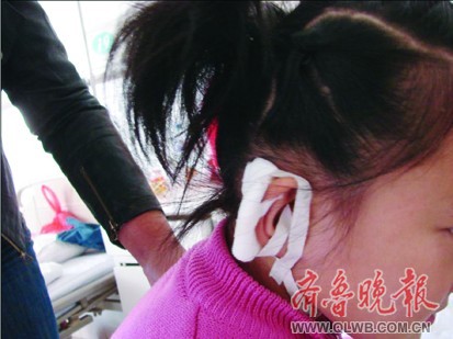 王女士趕緊帶孩子趕到聊城市第二人民醫(yī)院,急診室醫(yī)生稱孩子耳朵撕傷較重,需住院治療。醫(yī)生通過麻醉手術(shù)成功為小雨的右耳進(jìn)行了縫合。小雨的父親張先生告訴記者,孩子右耳后與頭皮連接處皮膚裂傷長約3厘米,并且已傷及皮下,醫(yī)生為孩子縫了四針。張先生說,事件發(fā)生后第二天,小雨班主任委托其家人送來了1000元錢,但其本人一直沒露面,這兩天他們打電話時(shí)王老師的電話也打不通了。