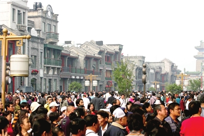 昨天,記者從崇文警方獲悉,十一黃金周前4天,前門大街接待觀光游客總數(shù)達99萬。前四天每天客流量均為綠色等級(同一時間在街內(nèi)游覽的游客在1萬人以下),警方未對游客采取限流措施。