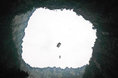 據(jù)悉,因天坑底部有暗河,組委會(huì)在暗河上布了接收網(wǎng),崖壁上、坑底都有緊急救援小隊(duì)隨時(shí)救助。