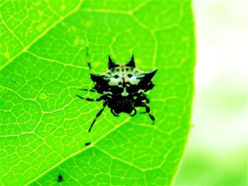 從照片上看,其堅硬的腹部上有六條棘刺,突出的刺狀與身上的斑紋配搭,形成一副惟妙惟肖的臉譜,且似乎在笑呢!斑@是我在考察成都地區(qū)的蜘蛛時偶然發(fā)現(xiàn)的!”趙力說,發(fā)現(xiàn)它的地點是在武侯祠的漢昭烈廟。