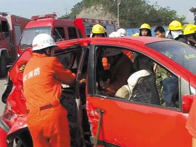 上午10:30左右,巴南區(qū)魚洞消防中隊接到報警,迅速趕往現(xiàn)場。發(fā)生事故的“長安奔奔”右側車身嚴重變形,受輕傷的駕駛員已經(jīng)自行跑出車外,3名乘客被困車上。消防官兵立即破拆車窗救人,2名傷者被送往醫(yī)院接受治療。目前,事故原因正在進一步調(diào)查中。 (重慶商報)