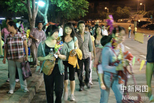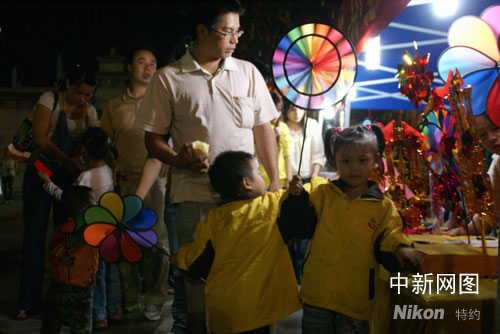 6日晚上21時(shí),逛“狗仔墟”的游客們開始登高上山,小孩子手持風(fēng)車,迎風(fēng)而跑,歡歌笑語(yǔ)灑滿登山路上。南海西樵山上的幾大景區(qū)已經(jīng)爆滿。