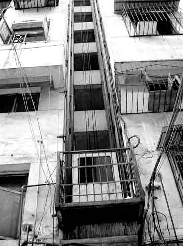 陳立雙已年過(guò)花甲,家住遂寧市濱河社區(qū)一棟10層老式建筑居民樓內(nèi)。9樓由陳立雙一家居住,10樓也有幾間房屋及花園。陳立雙將10樓租給杜某等人居住!9樓的陳立雙一家和10樓的杜某等10多人,就是靠這部‘土電梯’上下樓的!痹谠摼用駱歉浇,一居民指著電梯告訴記者。這部電梯位于2樓通道口,顯得非常破舊,看起來(lái)骯臟不堪。電梯的外殼是木板制成的,外形有些像集裝箱,高約1.7米,由6根鋼絲牽引其升降。電梯里面沒(méi)有任何報(bào)警裝置,人一進(jìn)去就搖搖晃晃的。