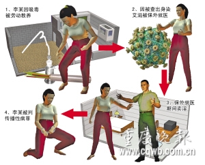 據(jù)永川區(qū)法院介紹,該區(qū)下崗中年婦女李某原是一名吸毒女子,因吸毒被勞動教養(yǎng)。進勞教所時,抽血化驗查出李的血液中攜帶艾滋病毒。勞教場所為此對李采取了保外就醫(yī)措施。