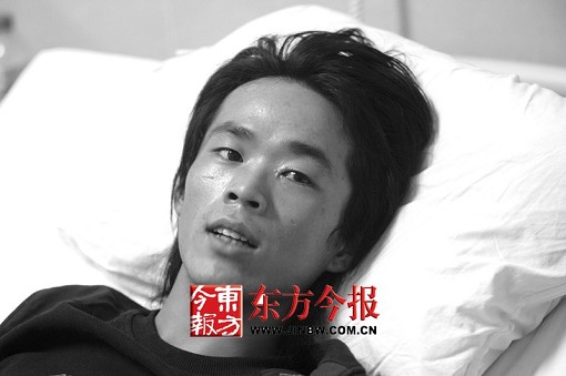 右腎挫裂的劉世峰躺在病床上,不能起床活動(dòng),他午飯能吃兩個(gè)包子喝一碗湯,氣色也很好,比較健談。