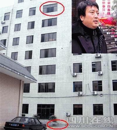 由于縣公安局緊鄰縣政府,民警很快就趕到了現(xiàn)場(chǎng)。在死者的身上,警方搜出的身份證顯示,該男子叫謝貴華,現(xiàn)年44歲,系佳美公司董事長(zhǎng)、縣政協(xié)委員。在距離墜樓處僅數(shù)十米的政府大院一角,警方還找到了謝貴華的“川L55335”銀灰色帕薩特轎車。