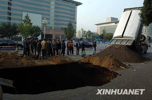 塌陷地段長約5到6米、深10米左右,緊鄰北京地鐵1號線和正在建設(shè)中的地鐵4號線。據(jù)北京地鐵公司介紹,這次路面塌陷與地鐵4號線的施工并沒有直接關(guān)系,也不會對地鐵1號線的運(yùn)行產(chǎn)生影響。