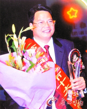 黃兆巒曾有多種榮譽(yù)加身,圖為其正在接受湛江市“十大杰出青年”頒獎(jiǎng)。