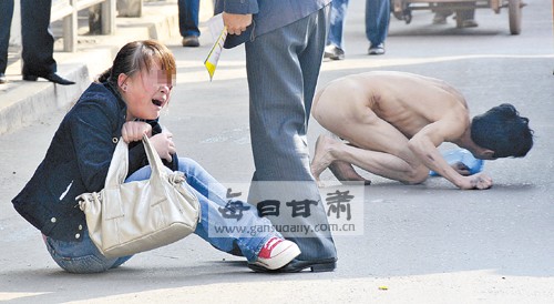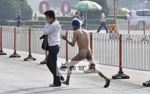 10月21日上午10時(shí)28分,在(蘭州)東方紅廣場(chǎng)至廣場(chǎng)西口一帶,一名30多歲渾身赤裸的瘋癲男子一會(huì)追逐過(guò)往行人,一會(huì)追逐駛過(guò)的車輛,一名年輕女子在遭其騷擾后嚇得失聲大哭。直到上午11時(shí)許,廣武門派出所民警接警趕到現(xiàn)場(chǎng)后,這一出鬧劇才得以收?qǐng)觥?