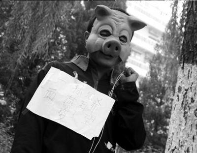 小劉說,他也是艱難考慮了一年才作出這個決定的。他說,戴面具不是因為怕羞,而是怕給家人帶來影響。至于專門挑選的豬頭造型的面具,則是“因為我也知道自己的行為很傻”。小劉的行為引來了路人的關(guān)注和質(zhì)疑!澳袃合ハ掠悬S金,你這么做都對不起父母,給我起來!”一位老人嚴(yán)厲地說。面對質(zhì)疑,小劉一再表示,要跪到堅持不住的時候再走,“我這一輩子只做這一次”。直至下午1點,小劉最終放棄了跪求,休息過后自行離開。