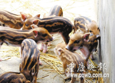 過上一個(gè)多月,雜交豬身上的條紋越來越粗,像斑馬一樣。市自然博物館動(dòng)物專家胥執(zhí)清分析認(rèn)為,等這批小豬長大之后,條紋又會(huì)消失,變成普通的淺黑色。為什么會(huì)出現(xiàn)這種毛色變化?胥老師認(rèn)為,家豬和野豬都有某種毛色隱性基因,兩者近親結(jié)婚碰到一起后,隱性基因顯現(xiàn)出來,就出現(xiàn)條紋。胥老師認(rèn)為這種雜交豬,仍然應(yīng)該叫野豬。 (劉邦云)