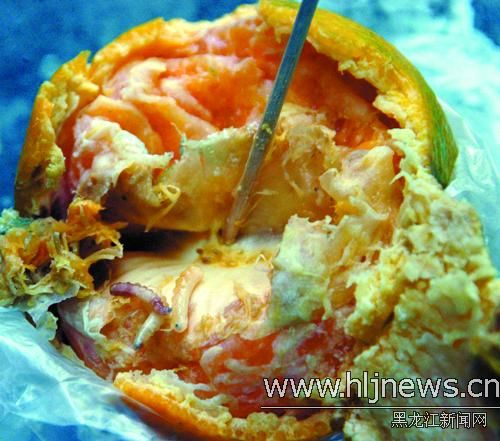23日中午,記者隨梁女士來(lái)到東北農(nóng)業(yè)大學(xué)農(nóng)學(xué)院,請(qǐng)有關(guān)專家鑒定一下梁女士吃到的是不是“蛆柑橘”。農(nóng)學(xué)院植物保護(hù)系于洪春教授仔細(xì)觀看后很肯定地說(shuō):“這確實(shí)是大實(shí)蠅的幼蟲(chóng),即人們通常所說(shuō)的蛆蟲(chóng)!睋(jù)于教授介紹,柑橘可能染上多種蛆蟲(chóng),以大實(shí)蠅為主,但不管是買(mǎi)了蛆柑還是誤食蛆柑,都不必驚慌,因?yàn)檫@種病蟲(chóng)只是在樹(shù)種之間相互傳播,就“危害級(jí)別”而言,跟桃子、棗等水果里長(zhǎng)的蟲(chóng)子差不多,市民食用時(shí)如果發(fā)現(xiàn),扔掉即可,絕沒(méi)有手機(jī)短信里“傳說(shuō)”的那樣可怕。(楊志英 李凌雪)(東北網(wǎng)-生活報(bào))