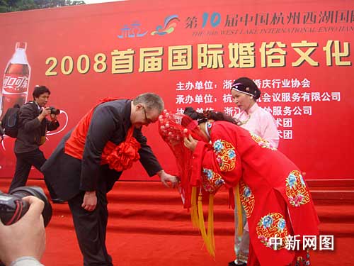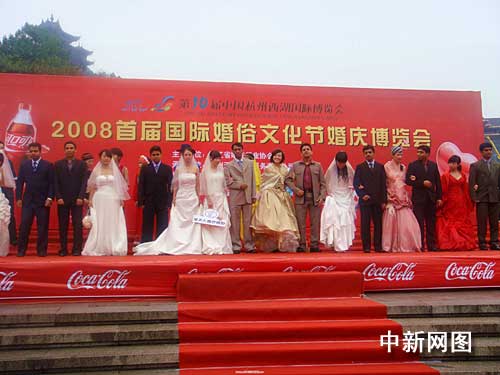 中新網(wǎng)杭州10月25日電(柴燕菲 方心怡)今天的西子湖彌漫著濃濃的幸福味道。在今天開幕的二00八首屆國際婚俗文化節(jié)上,來自印度、巴基斯坦等國的十余對(duì)異國新人在愛情之都杭州喜結(jié)良緣。